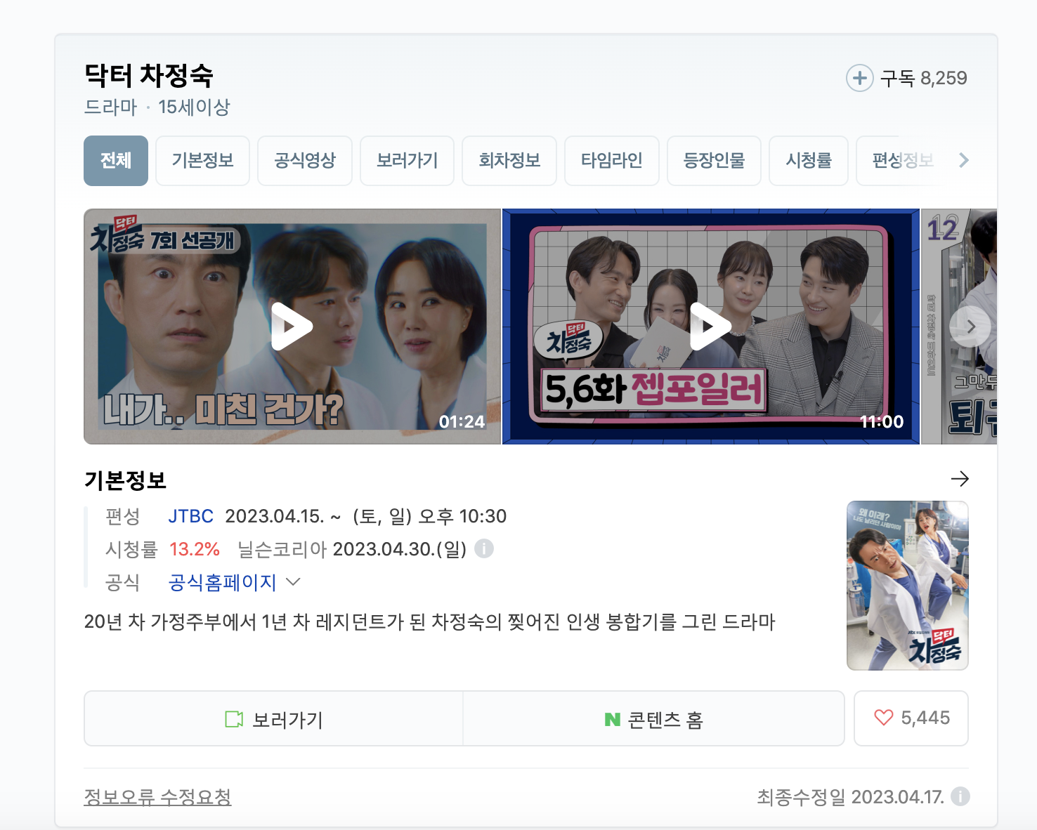 요즘 재미있게 보고 있는 드라마 ! 닥터 차정숙 입니다 ~